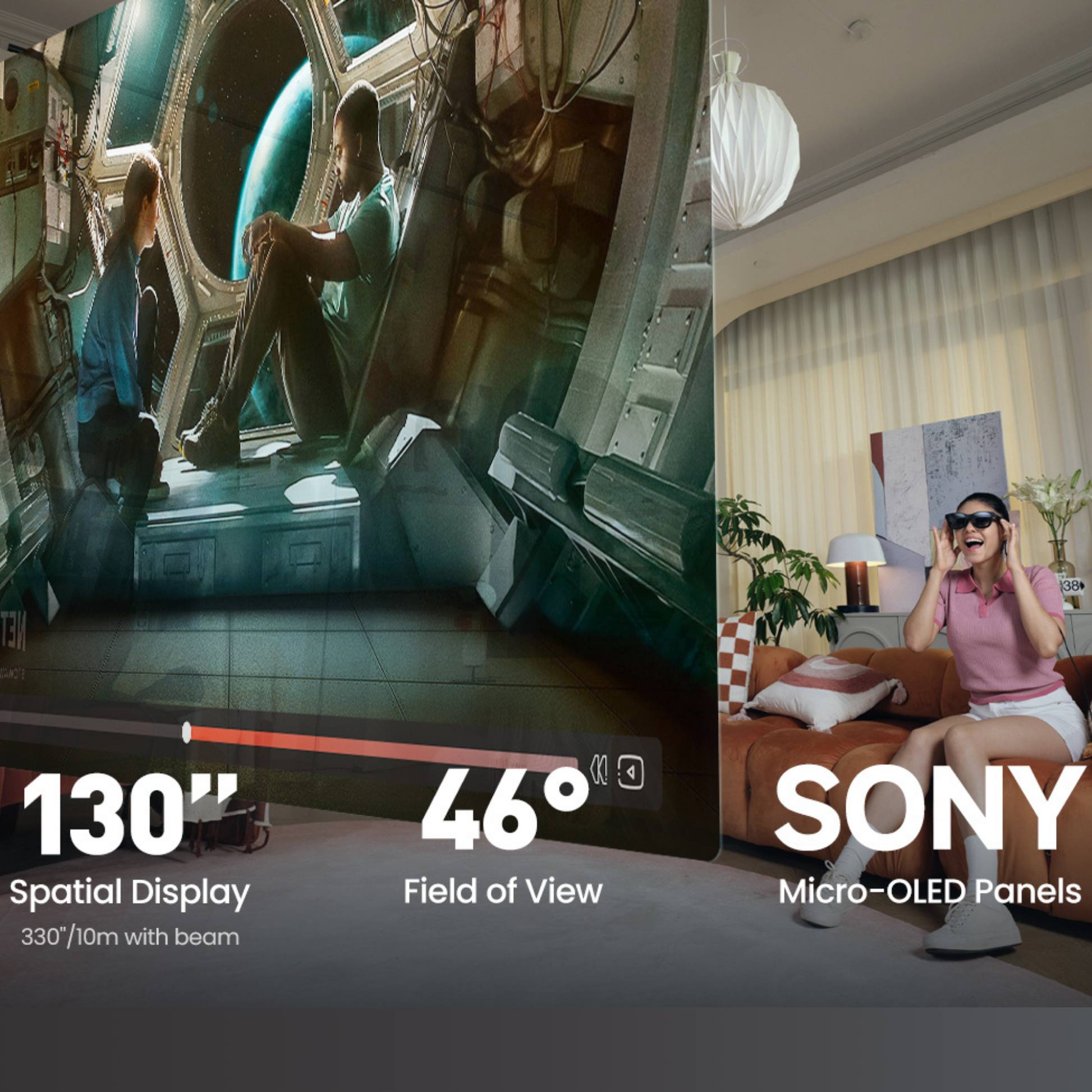 - Immersive Visuals, Zero Latency: Experience unparalleled clarity with XREAL Air 2 Pro, powered by SONY Micro-OLED panels. Enjoy industry-leading visuals with a 46° Field of View and a 120Hz refresh rate, delivering an astonishing visual experience right out of the box.